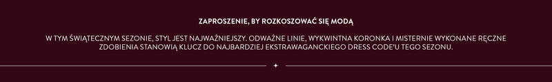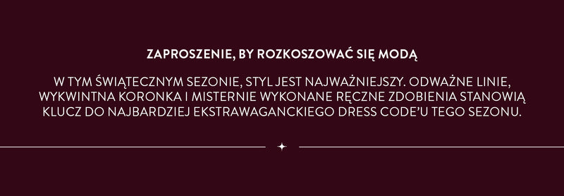 W tym świątecznym sezonie styl gra główną rolę. Odkryj wyraziste sylwetki, miękki aksamit, lśniącą satynę i efektowne zdobienia. Nasza Świąteczna Kolekcja Imprezowa prezentuje aksamitne mini, cekinowe maxi oraz kolor sezonu: burgund.
