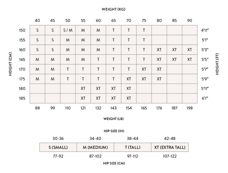Znajdź swój idealny rozmiar dzięki naszej międzynarodowej tabeli rozmiarów.